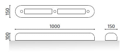 Rubber vial separator in a single 1000 mm block. x 150 mm. x 100 mm. height. Fixing to the ground by means of three metal studs of ø 10x140 mm.