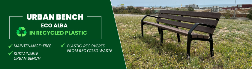 Ecological urban benches made of 100% recycled and recyclable plastic, ideal for town halls, shopping centres, schools, squares, streets, parks,...